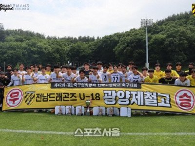 제공 | 전남[스포츠서울 박준범기자] 전남드래곤즈 유스 광양제철고가 대한축구협회장배 전국고등학교 축구대회 정상에 올랐다. 광양제철고는 28일 남해공설운동장에서 열린 제42회 대한축구협회장배 전국고등학교 축구대회 결승전에서 후반 25분 터진 문승민의 결승골로 전북현대 유스 영생고를 1-0으로 꺾고 우승을 차지했다. 광양제철고는 지난 2019년 열린 대회 결승…