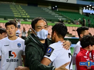 FA컵 16강전에서 전북 현대를 이긴 양주시민축구단의 박성배 감독.제공 | 대한축구협회[스포츠서울 정다워기자] “만감이 교차합니다. 마냥 기쁘지는 않네요.”박성배 감독이 이끄는 K3 소속의 양주시민축구단은 26일 전주월드컵경기장에서 열린 전북 현대와의 FA컵 16강에서 승부차기 접전 끝에 승리하며 8강에 진출하는 대이변을 썼다. 3부리그 소속이 K리그 최강…