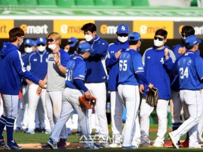 삼성 라이온즈 선수들이 25일 인천 SSG랜더스필드에서 진행된 SSG와의 시범경기에서 6-3으로 승리한 뒤 마운드에 모여 하이파이브를 하고있다. 2021.03.25. 김도훈기자 dica@sportsseoul.com[스포츠서울 남서영기자]1위를 유지하던 삼성에 위기가 찾아왔다.6할 승률을 유지하던 삼성은 최근 연패에 빠지며 1위 보전이 힘들어졌다. 개막 전부…