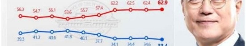 文 대통령 지지율 33.4%…집권 후 최저치[리얼미터]