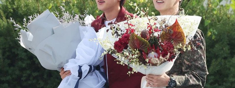 BTS 제이홉, 맏형 진 축하 받으며 유쾌한 전역 "원주 시민들에 감사"