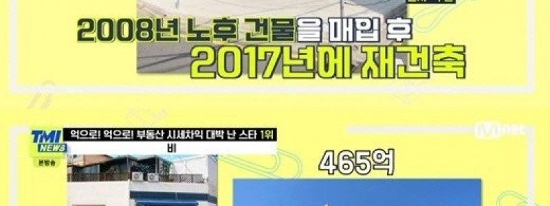 'TMI뉴스' 비, 연예계 억소리 나는 부동산 시세차익 거둔 스타 1위
